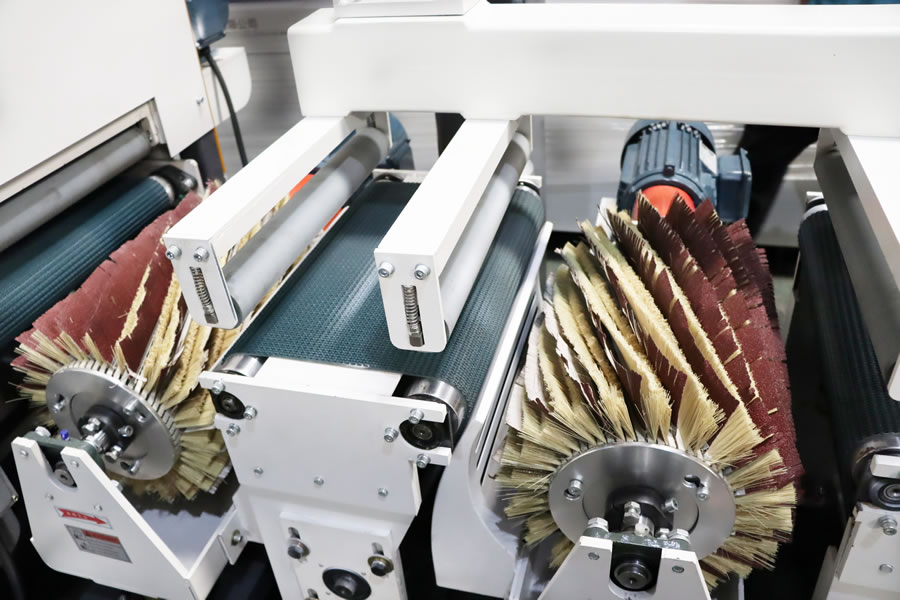 此設備帶自動進料系統(tǒng),四個面同時打磨,大大提高生產效率。 適用于各種實木、密度板、貼皮板等等直線型(如門邊線、踢腳線、相框等等)、L型的木線和長條木板的規(guī)則面、異形面、平面和曲面的白坯、油漆的打磨、拋光等。