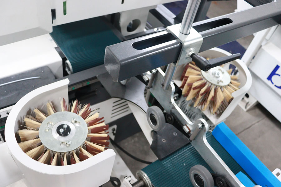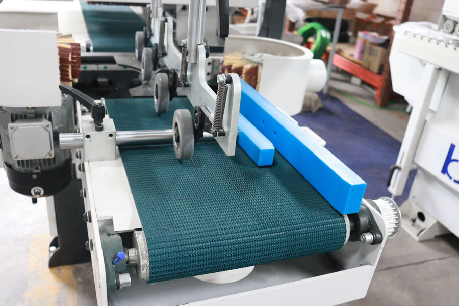 此設(shè)備帶自動進料系統(tǒng),三個面同時打磨,大大提高生產(chǎn)效率。 適用于各種實木、密度板、貼皮板等等直線型(如門邊線、踢腳線、相框等等)、L型的木線和長條木板的規(guī)則面、異形面、平面和曲面的白坯、油漆的打磨、拋光等。