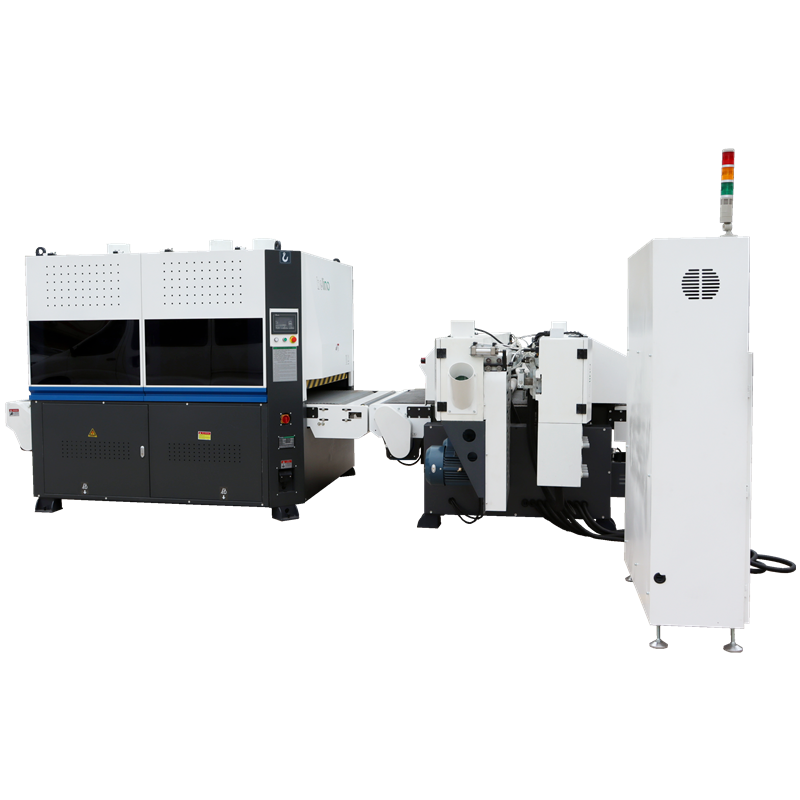 琴鍵式砂光系統搭配高配的獨立式襯帶結構,通過自動調節琴鍵壓墊單元的削砂力度,使產品不會出現砂穿或漏砂現象。輸送臺帶真空吸附功能。 解決傳統平面砂光機(即精準定厚砂光)對于厚度不均的木料,一砂就穿,一砂就漏的難題。 獨特的雙橫帶結構配合常規異形砂光機對工件進行全方位的精細打磨,拋光使工件的砂光紋理更自然,平整度更高、表面更光滑,從而有效地減小油漆的消耗,起到節省油漆的作用。