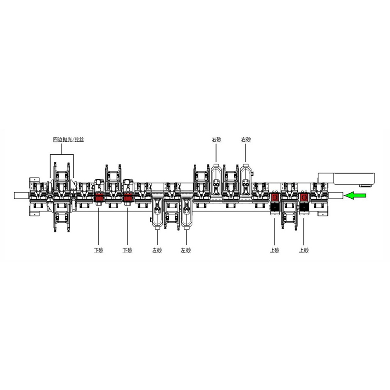 3、可根椐不同工藝要求,自由將各個(gè)砂頭,砂架進(jìn)行排列調(diào)整和配置增減。